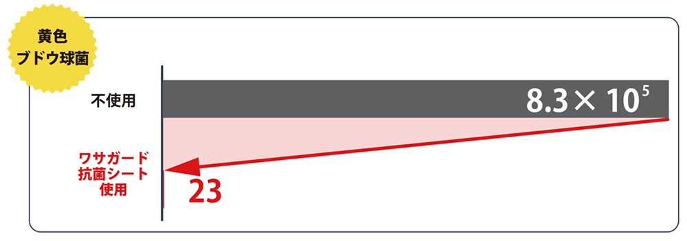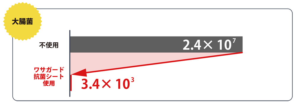 菌液0.1mlをシャーレに入れ、その上にワサガード抗菌シートをのせ密封後、30°Cの状態で24時間放置。